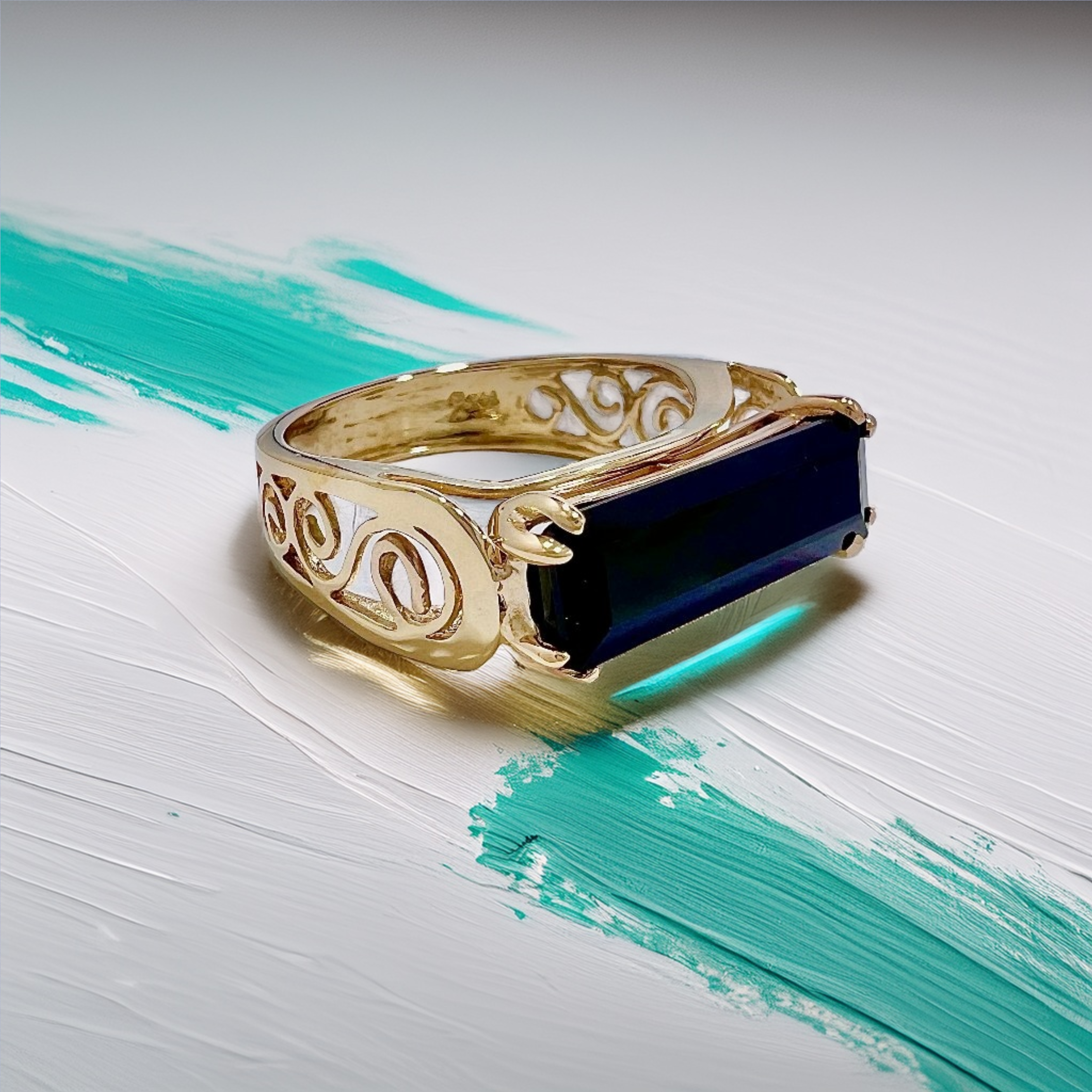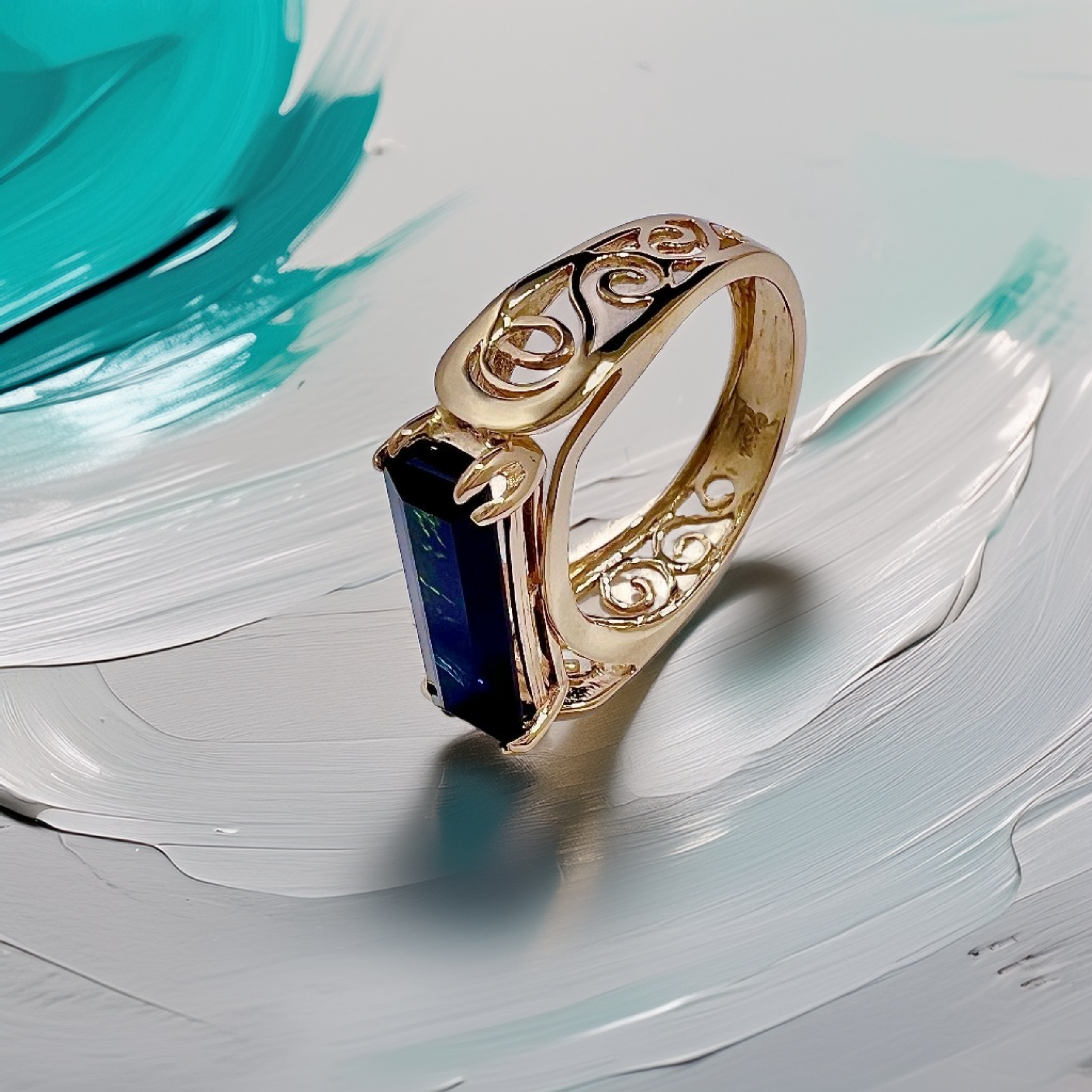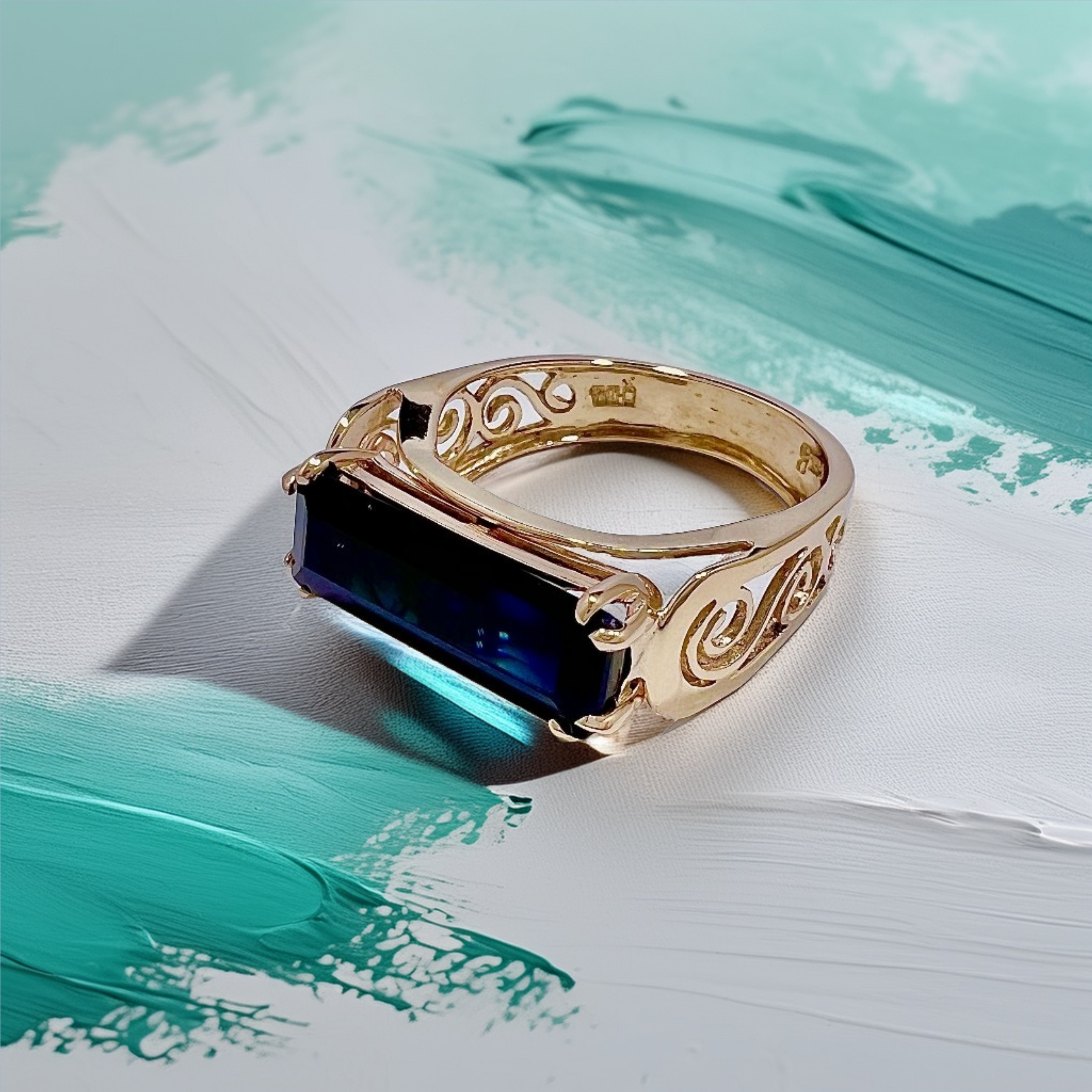 A: The 14kt Yellow Gold setting provides a warm, rich contrast that beautifully complements the cool, vibrant Blue-Green Tourmaline. The 14kt purity (585) ensures the ring is both durable and retains its lustrous finish for a lifetime of wear.