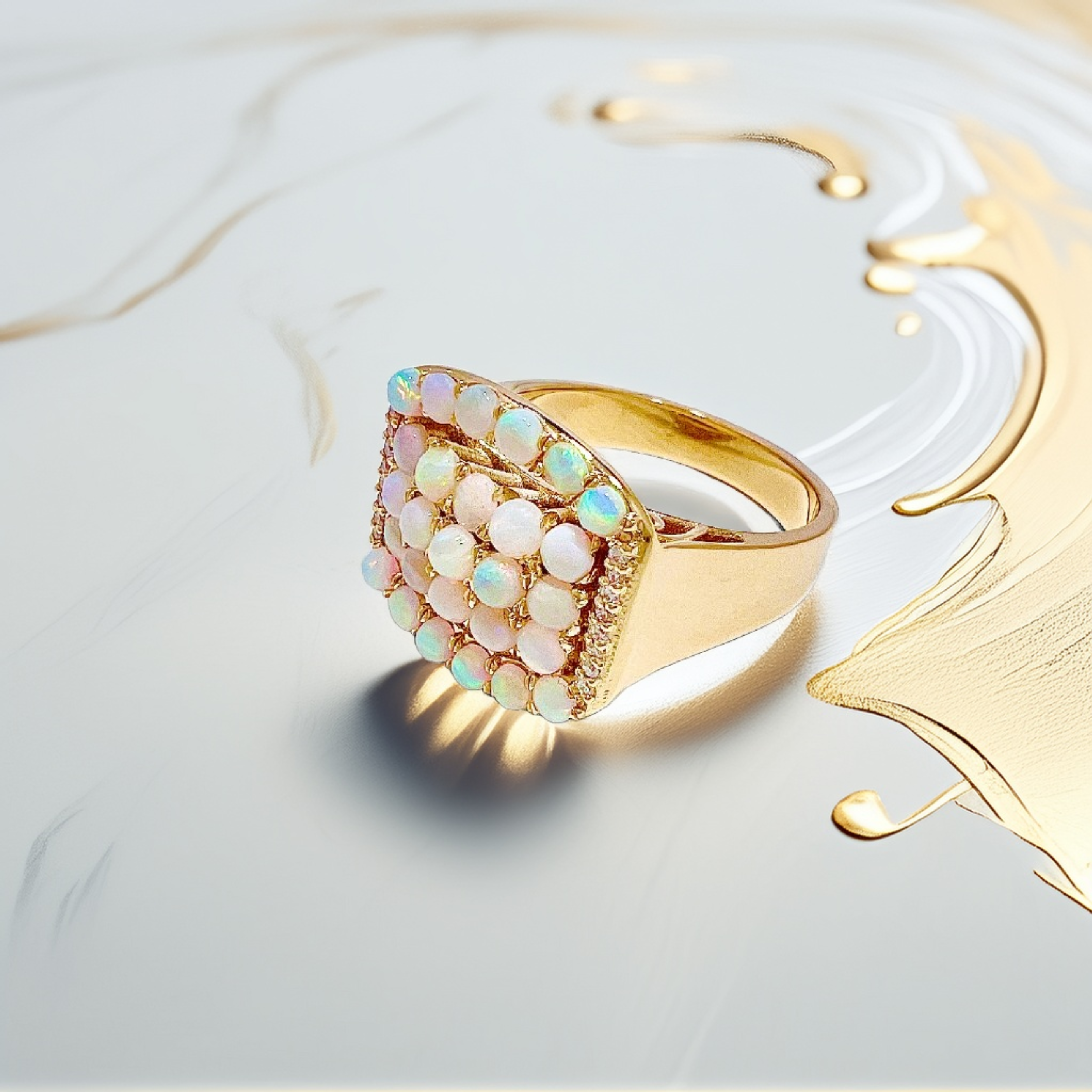 Ideal For: A yellow gold opal cluster ring, October birthstone statement, or luxury cocktail wear.