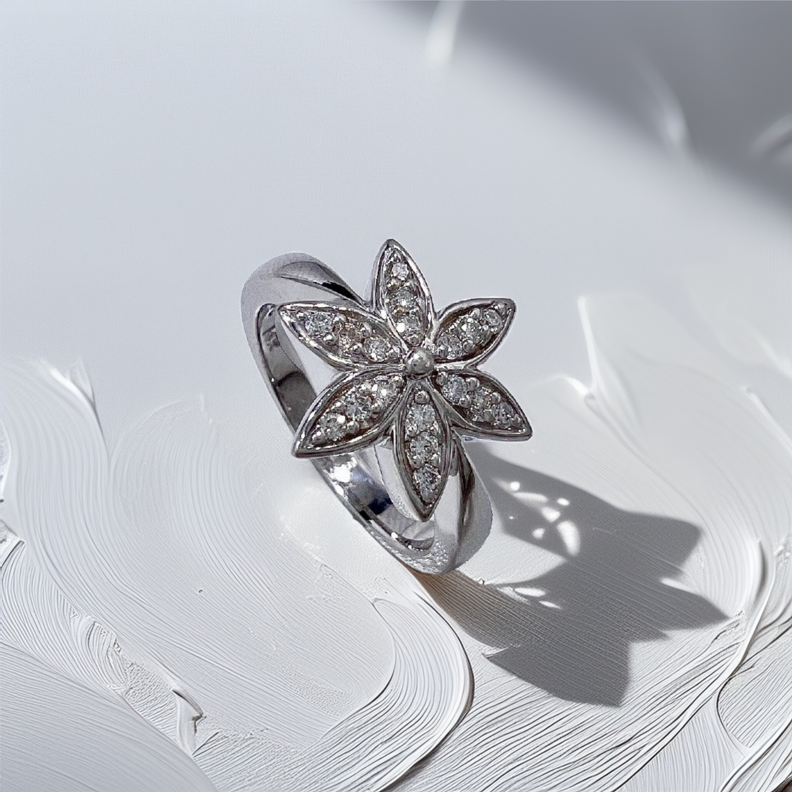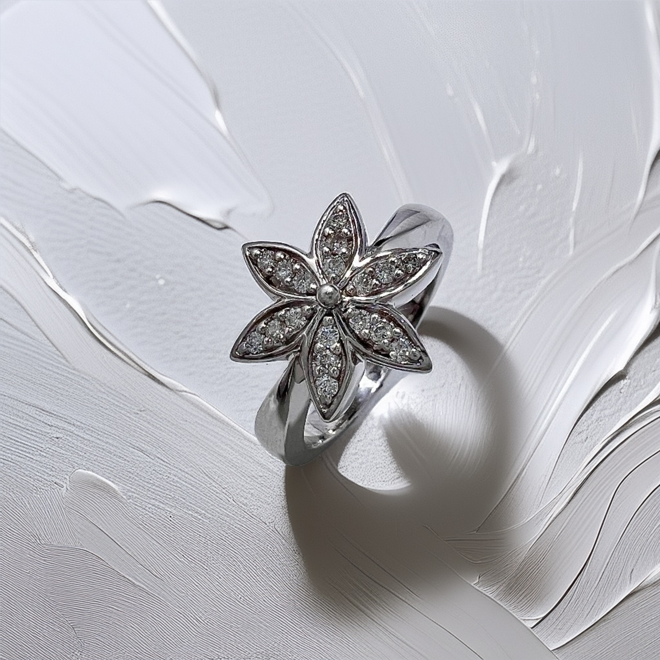 14K White Gold Diamond Cannabis Leaf Ring | 0.15tcw Natural Diamond Statement Piece