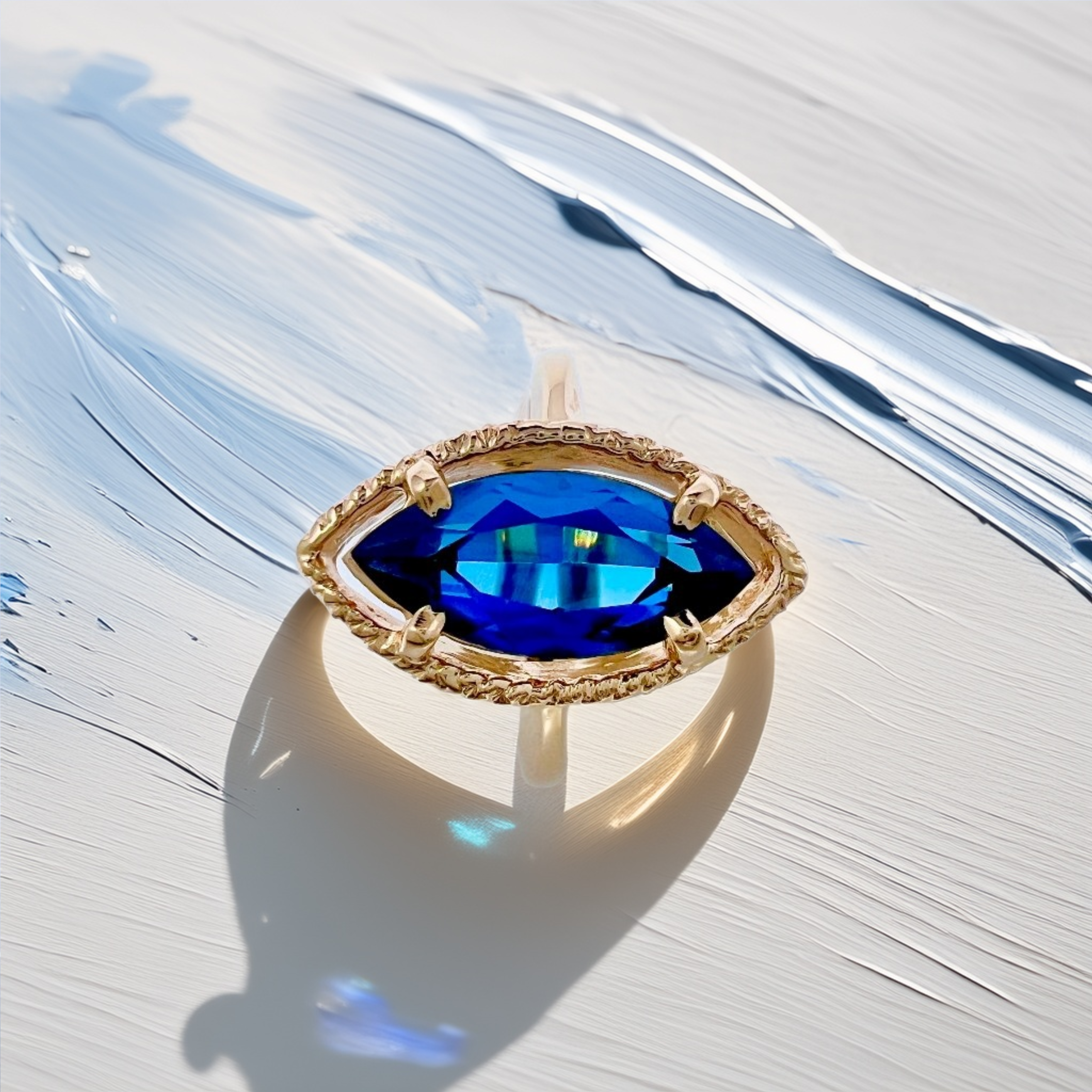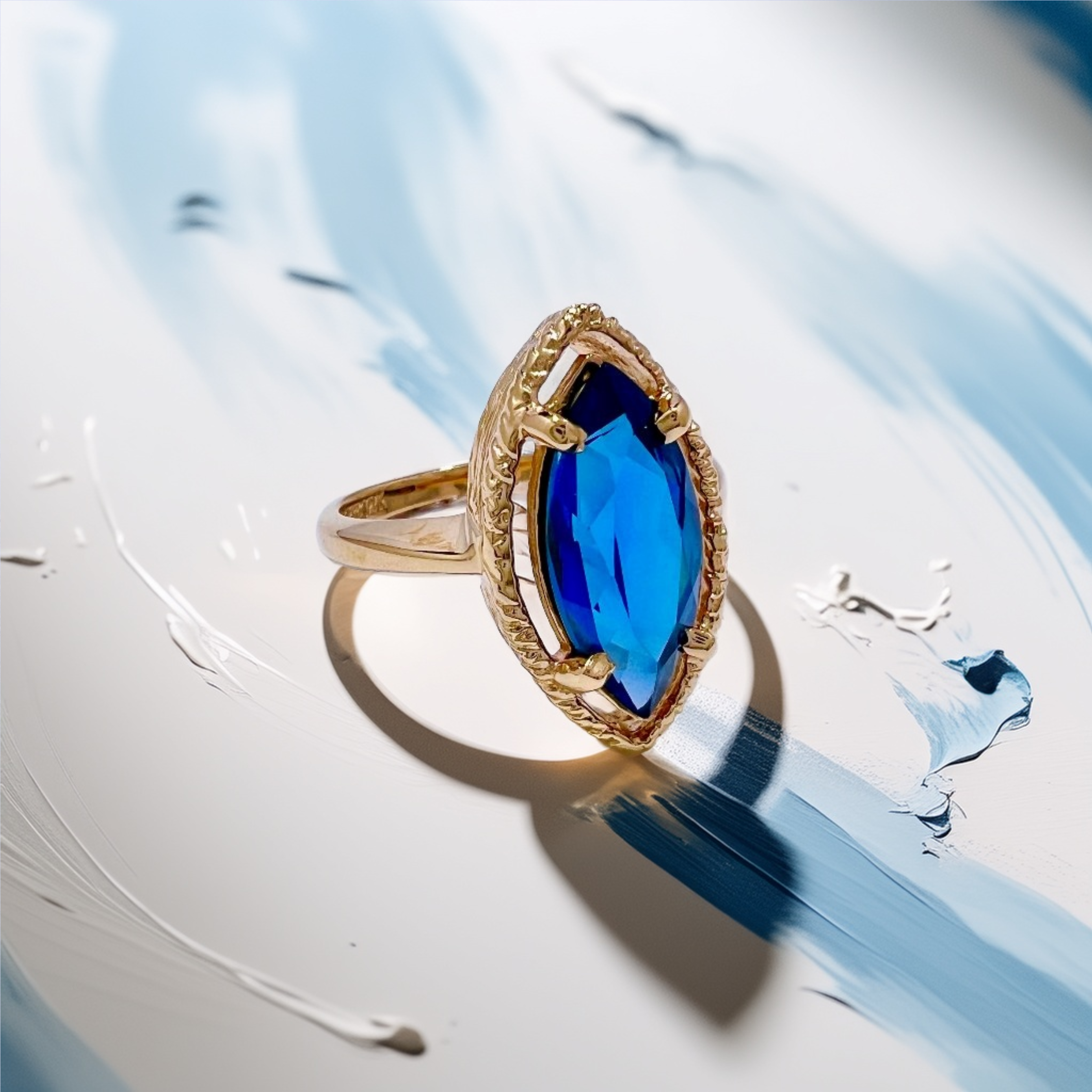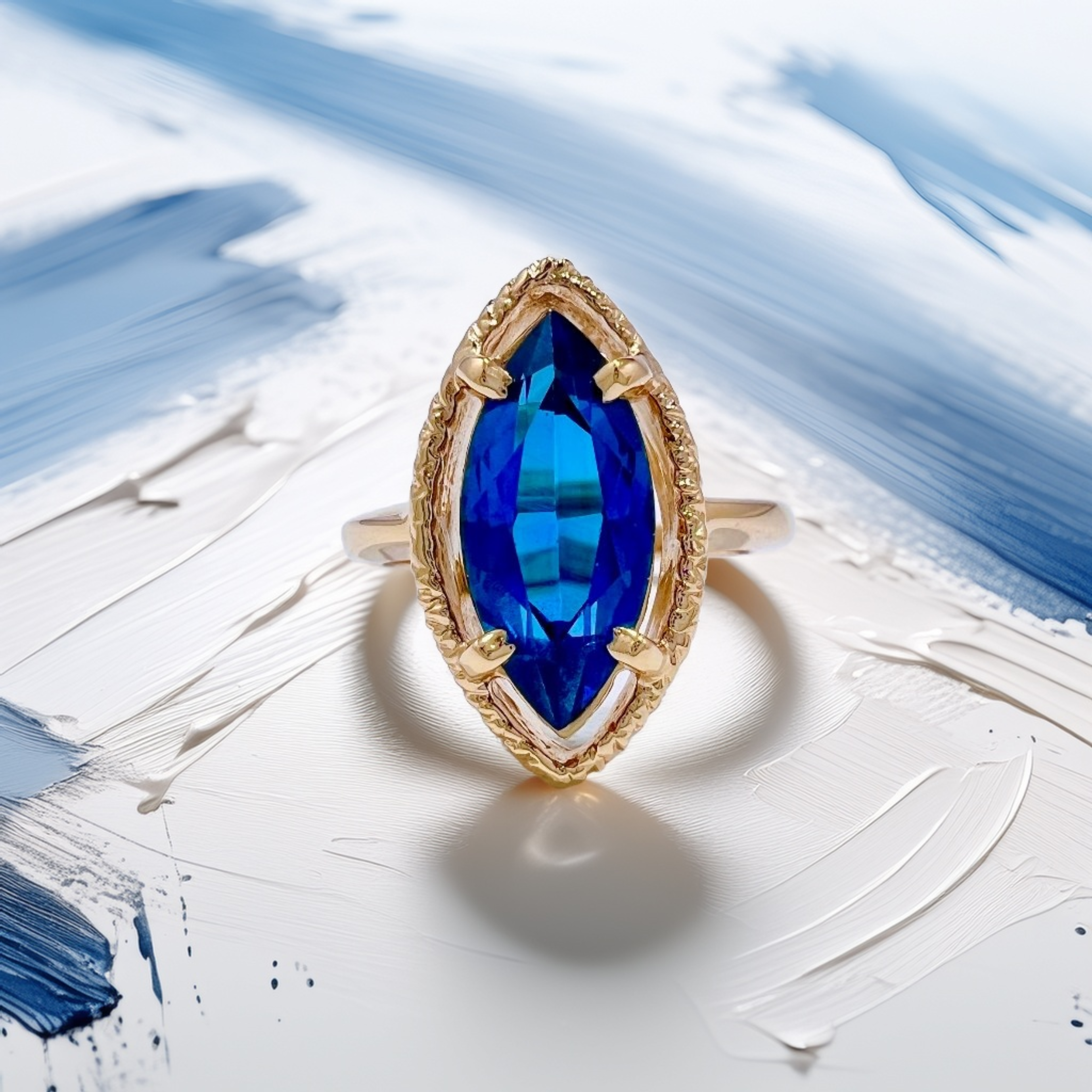 Ideal For: A December Birthstone gift, Marquise Blue Topaz Ring, or bold cocktail wear.