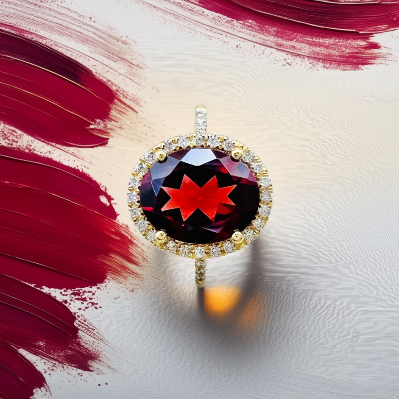 Ideal For: A luxurious January Birthstone Ring, anniversary gift, or bold Garnet Halo Ring.