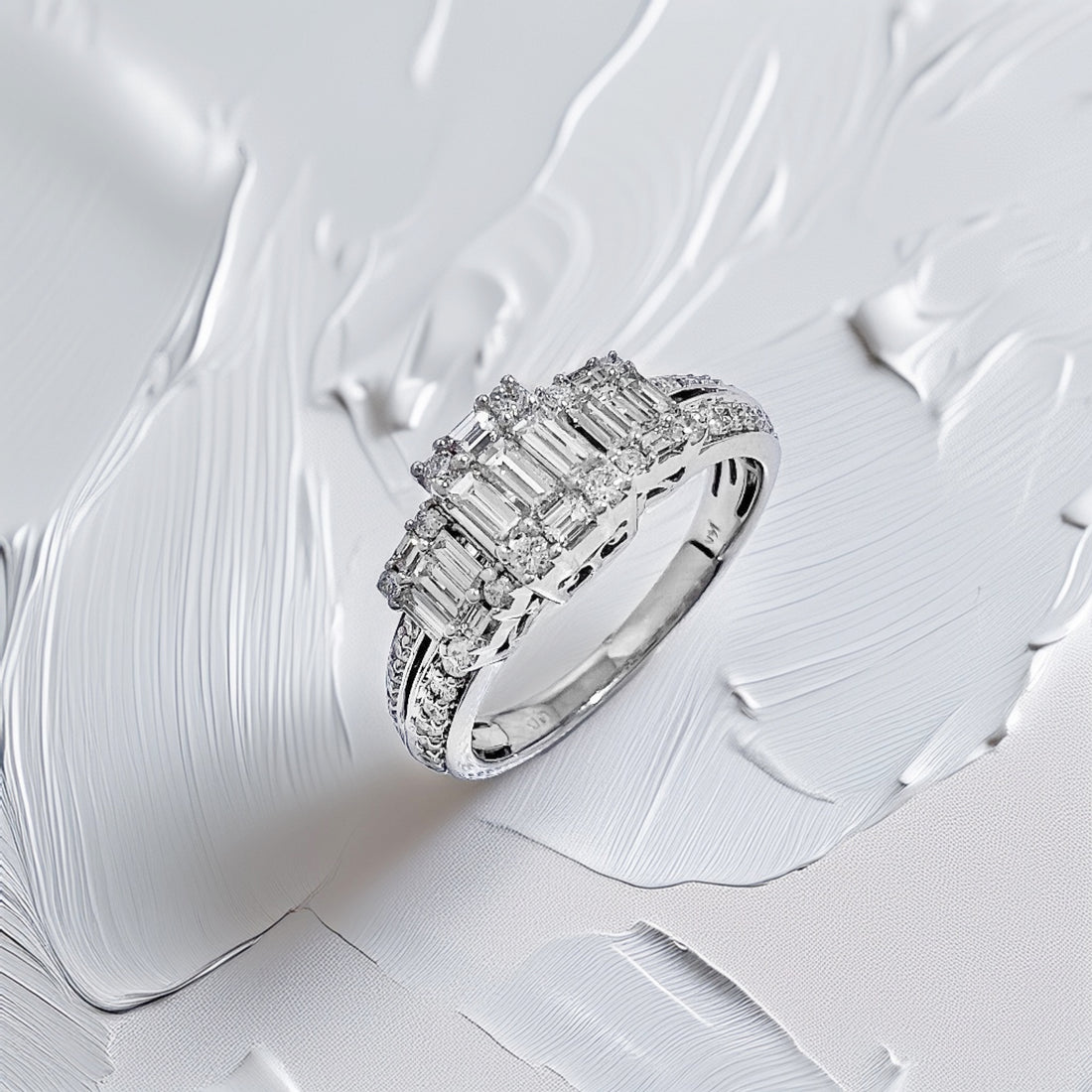 Baguette & Round Cluster Diamond Engagement Ring White Gold 1.05tcw This ring is built for...