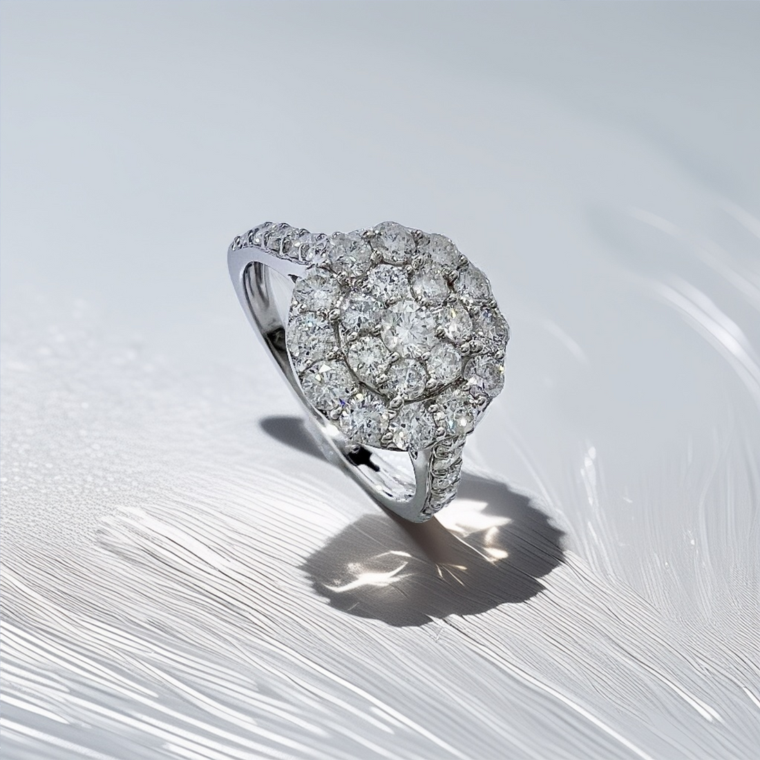 Cluster Diamond Engagement Ring White Gold 1.60tcw
