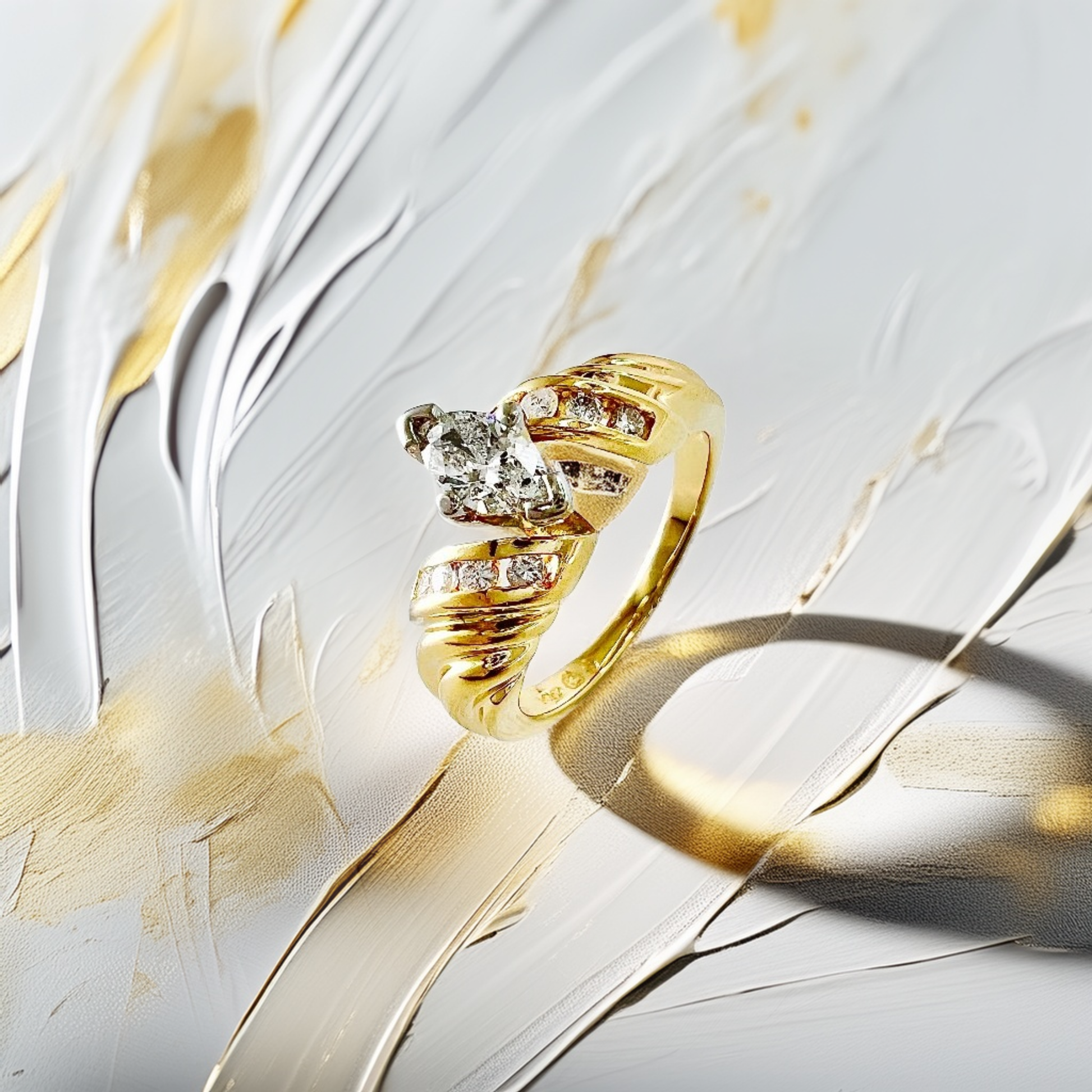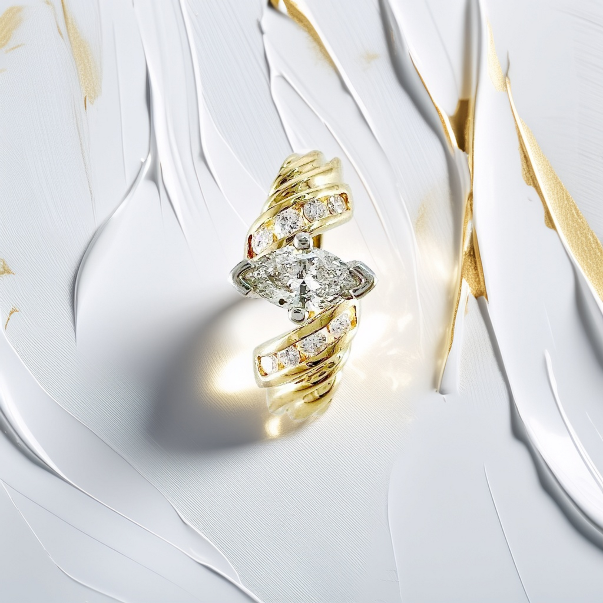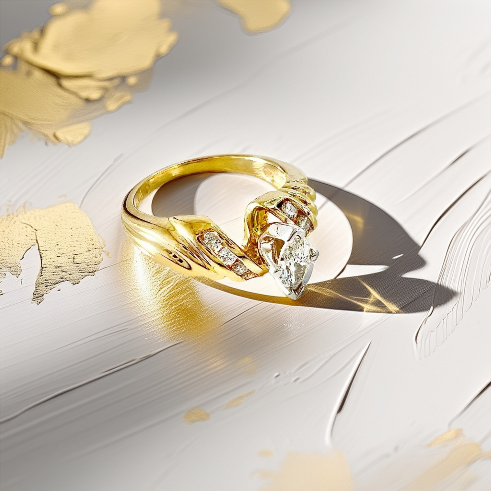 Crafted in rich 14kt yellow gold, the heavier band gives the ring a sense of permanence—measured, substantial, and composed. Marquise shapes are often associated with individuality and movement, while the vintage profile leans into balance rather than ornament. This is a ring defined by presence, not excess.