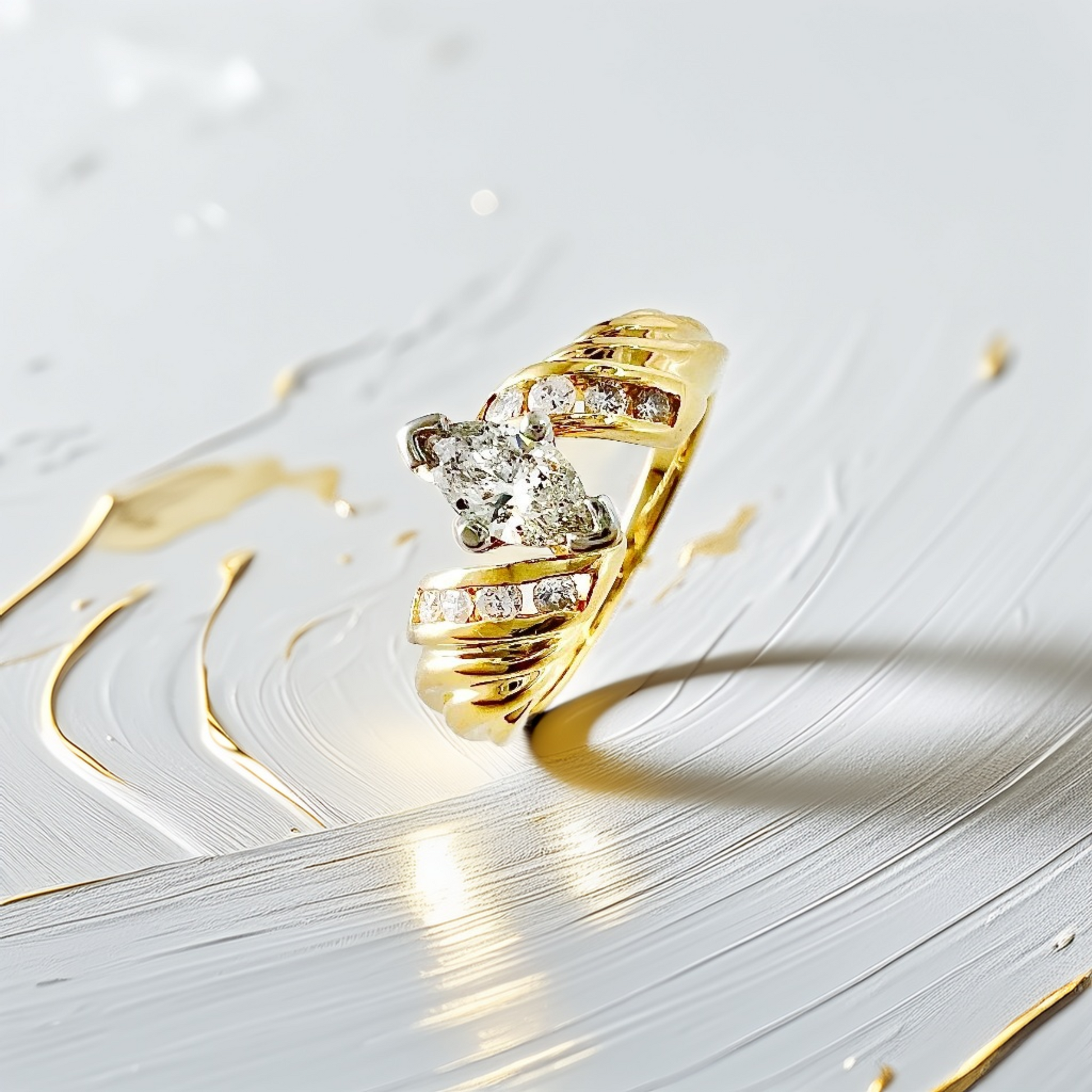 The 0.50ct Marquise-Cut Vintage Diamond Engagement Ring is grounded in heritage and proportion. The marquise-cut center introduces length and direction, its pointed silhouette held securely in a V-prong setting that emphasizes structure and intention. Channel-set round diamonds add quiet continuity, reinforcing the design without interrupting its flow.