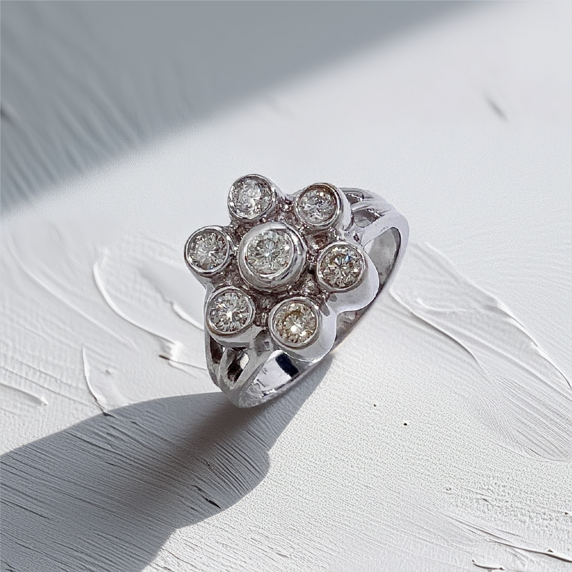 Bezel Flower Diamond Ring | 0.62 tcw Floral Cluster Statement