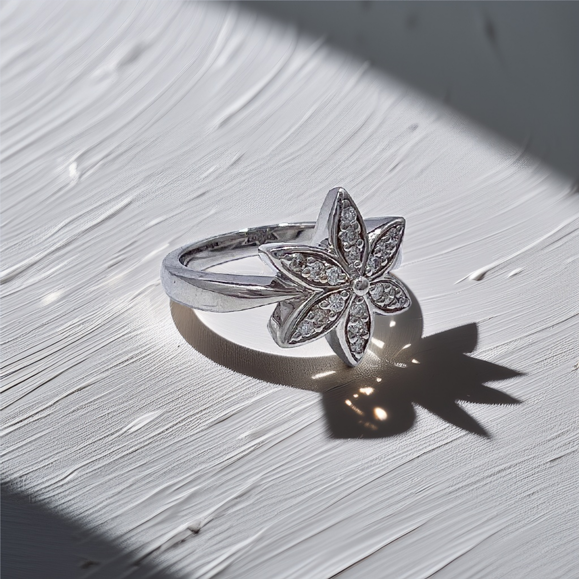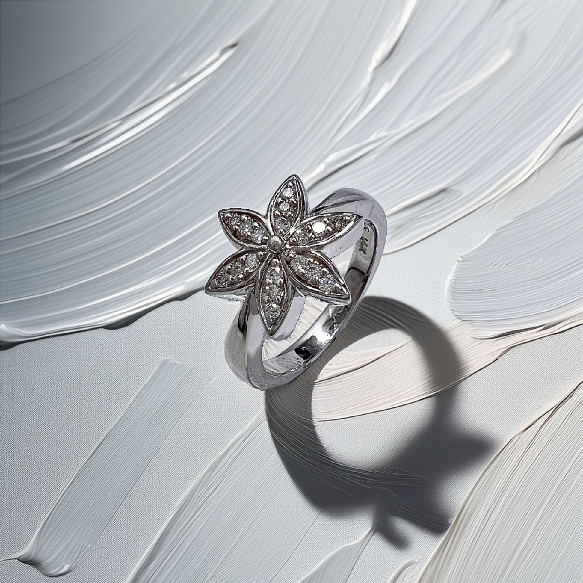 14K White Gold Diamond Cannabis Leaf Ring | 0.15tcw Natural Diamond Statement Piece