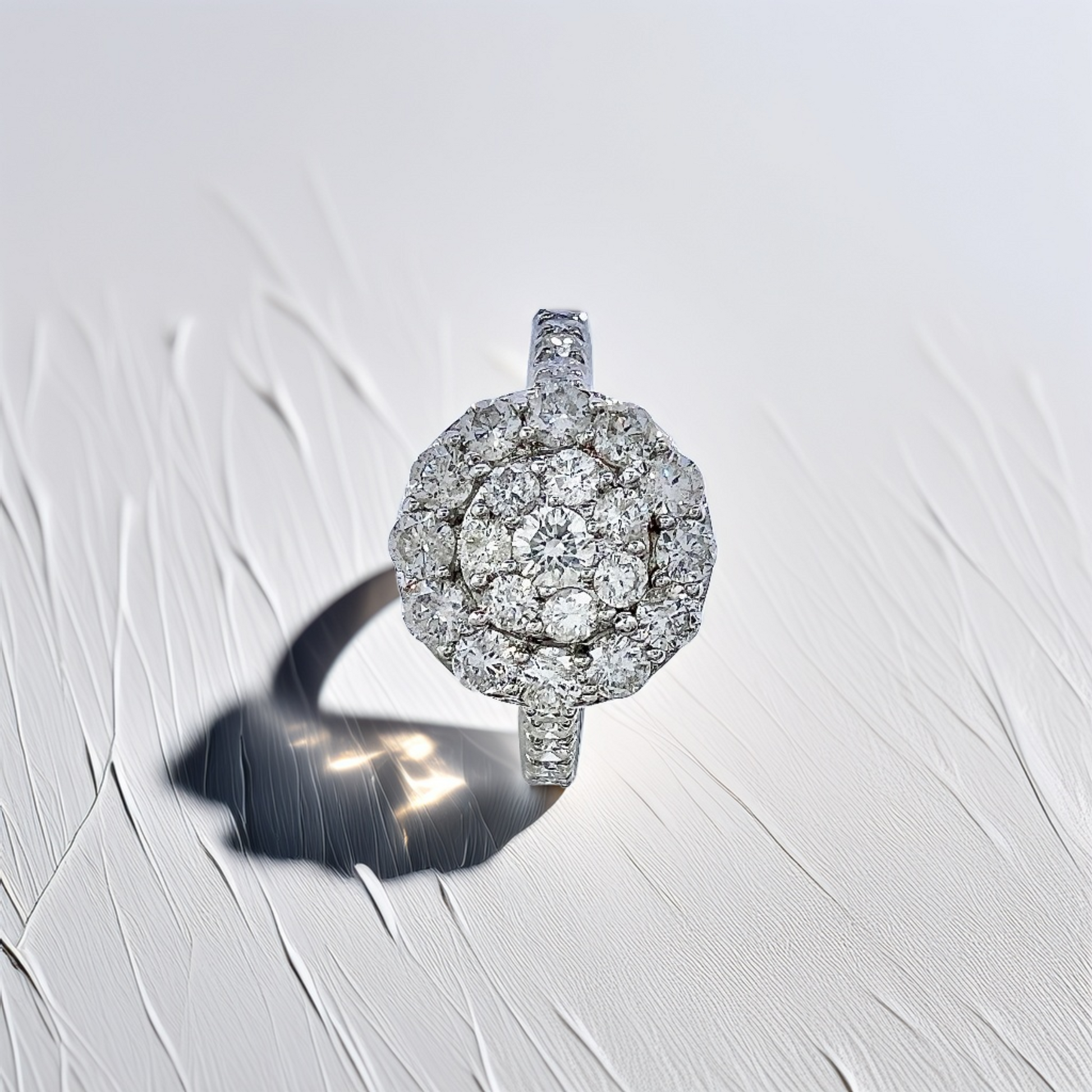 - **Q: Why choose a cluster halo design?** A: The halo setting amplifies the sparkle of your center diamond and creates the visual appearance of a larger stone. It's an elegant way to maximize brilliance and impact while offering excellent value compared to a single large diamond.