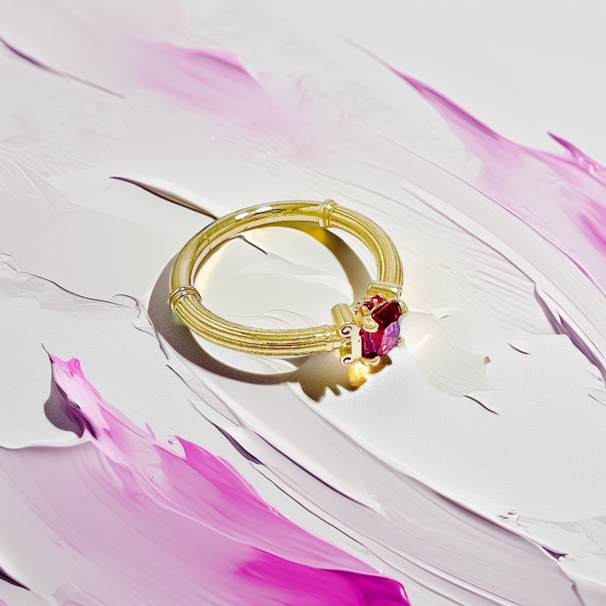 A design built for presence. The Red Spinel Pillar Gold Ring carries a structure that feels carved with intention—clean lines, vertical strength, and a gemstone that doesn’t ask for attention; it commands it. The cushion-cut spinel introduces a deep red tone tied to boldness and emotional force, the kind of color that signals resilience, passion, and self-assurance. Cushion shapes often resonate with individuals who value balance—soft edges meeting strong geometry—people who lead with empathy but act with conviction.