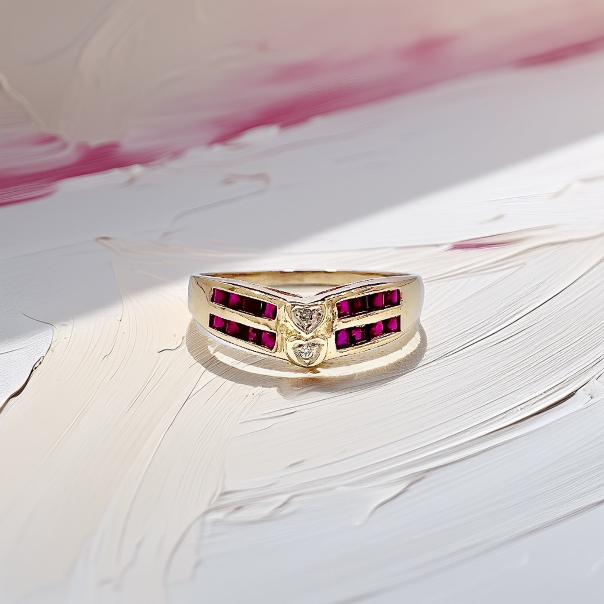 Ruby Diamond Heart Band Vintage
