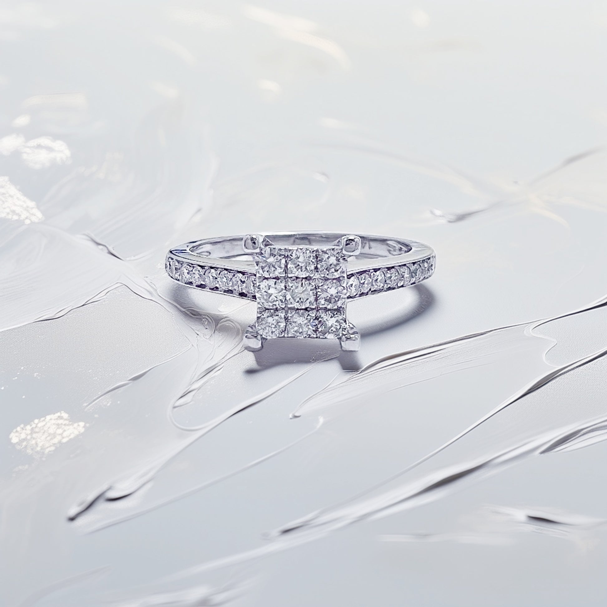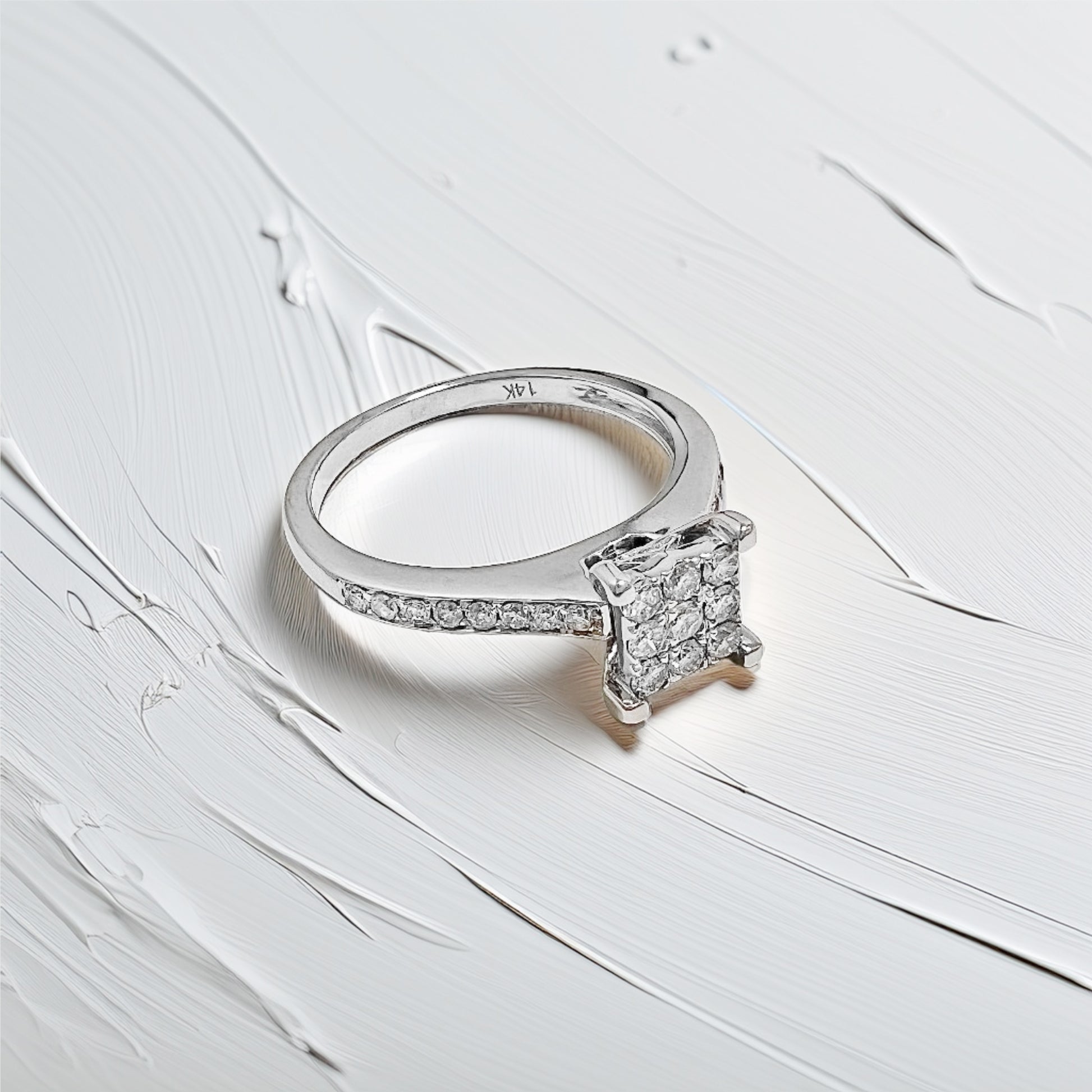 Square Shape Diamond Cluster Engagement Ring 0.40tcw