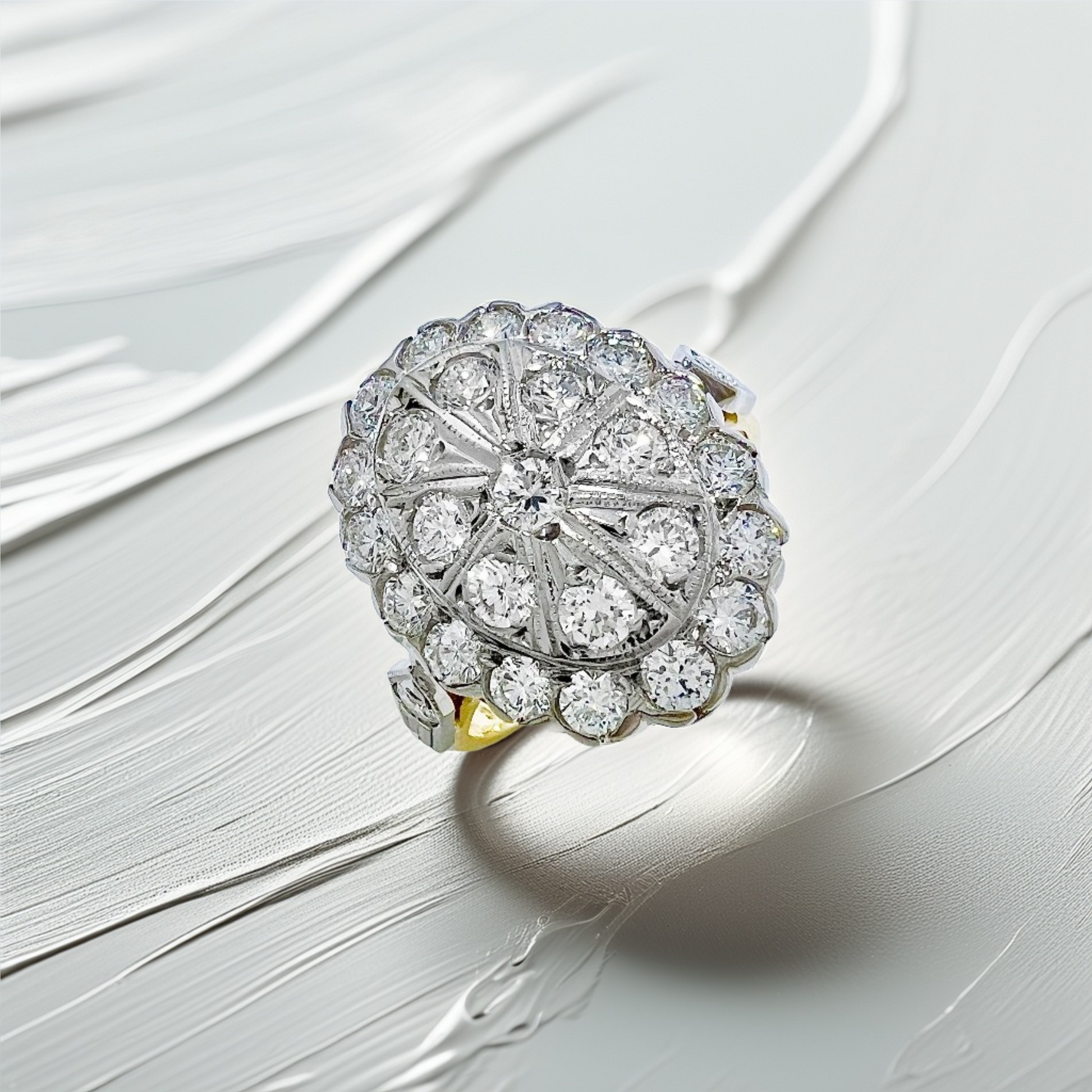 Ideal For: A Two-Tone Vintage Engagement Ring, milestone anniversary, or luxury statement piece.
