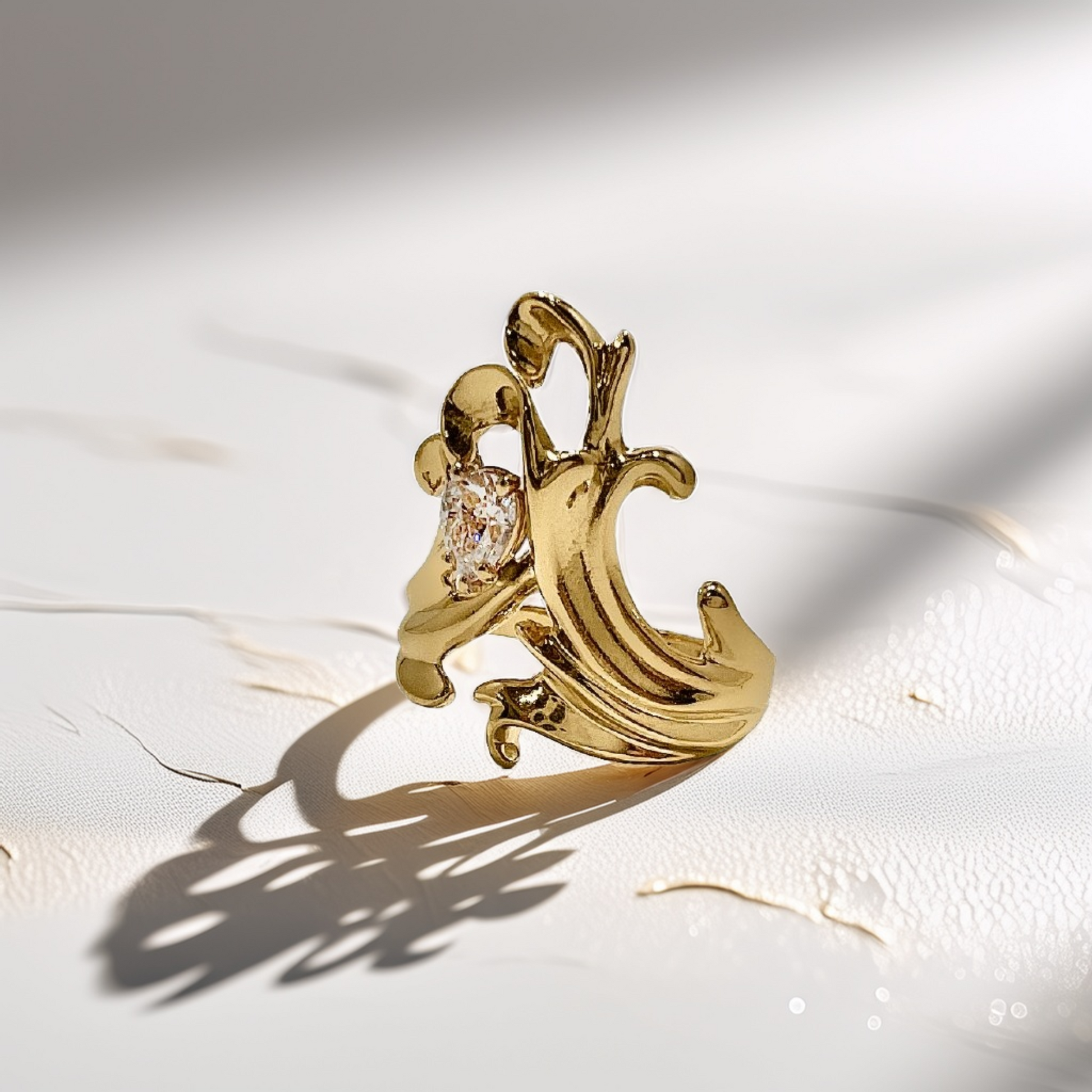 A: Yes. While the central diamond is 0.25ct, the ring functions as a bold statement piece due to the 23.30mm large setting and 6.50 Grams of metal. The focus is on the scale and artistry of the overall gold setting, not the carat weight alone.